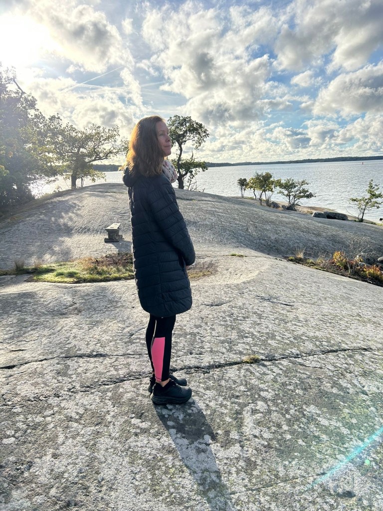 Efter frukost idag vandrade vi en dryg mil på Gränsöleden. Underbar omgivningar och vädret var lika fint. Otroligt vackert. Gott att ta en paus på klipphällarna ut mot östra sidan där havet öppnar upp. På väg tillbaka såg vi enorma flyttfågelstreck högt upp i luften. Vi gjorde detsamma. Återvände hem och helgen gav mycket energi. Den tog energi också, efter den promenaden är jag nu riktigt trött och jag skulle kunna somna här framför brasan. Men det går inte. Om en stund ska jag på styrelsemöte i vår villaägareförening Solbacka. Alltid är det något.