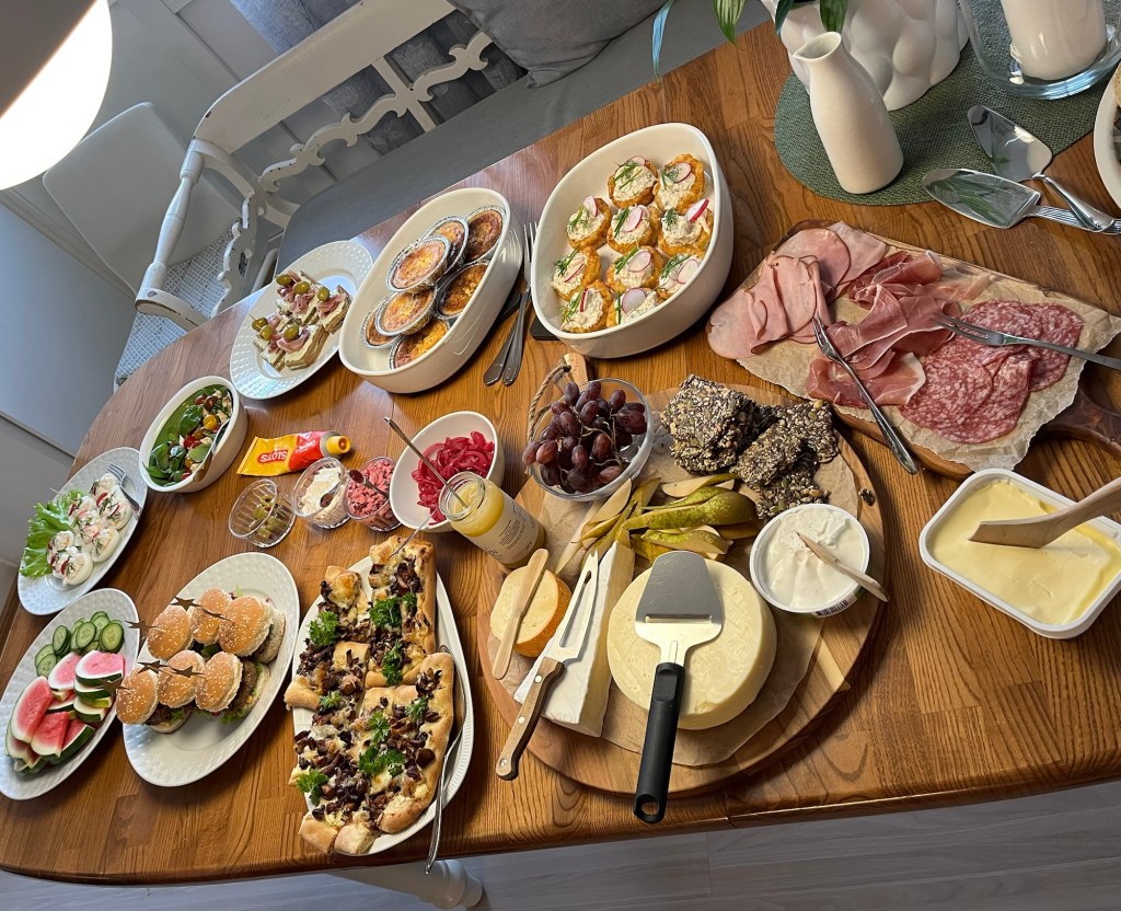 Tog cykeln till stan och vårt gamla gäng från RH-Stolen åkte till Pålskog där en av dem bor, Kristina. Det ligger utanför Skillingaryd så det är en bit. Sagolikt vackert att titta ut i naturen från bilen. Brunch var utlovat och vilket buffébord som väntade oss. Så mycket god mat, småplock och delikatesser. Mums!!!