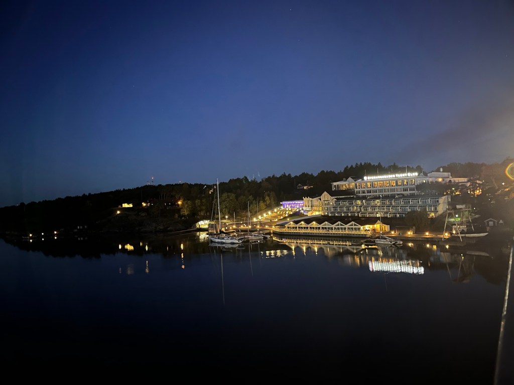 Morgonen startade med en promenad. Krispigt och kallt och mörkt. Gick över bron från Stenungsbaden ned till centrum. Härligt att få lite luft och några steg även om sängvärmen var lite jobbig att lämna. Det blev inte jättesent igår men lite surr hann vi med efter den goda maten och den härliga underhållningen. Det är ju oxå lite av grejen, att socialisera sig.
