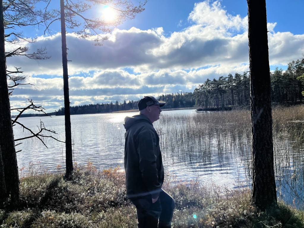 Sedan bredde vi mackor och bryggde kaffe. Spexhultasjön runt på programmet. Att ge sig ut i naturen, i skogen i vackert väder (även om det var lite kyligt), ha med sig fika är nog det jag uppskattar absolut mest. Att lunka på bland granar, träd och rötter längs med sjön – det är som att alla problem och mörkheter försvinner. Å allt är helt gratis. Förutom att kaffet, brödet, smöret och osten kostar lite. 13 km runt och vi tog en go fika vid vindskyddet mittemot. Hittade även några vanliga kantareller och en hel del trattkantareller som fick följa med hem. Lite att torka och lite till kvällens sås. Vi har haft en stor bit älgkött i sous vide’n i flera timmar och gjort en potatisgratäng. Promenaden tog på krafterna och jag är så hungrig nu.