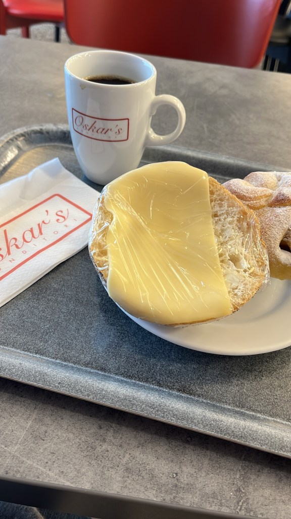 Åkte till Vetlanda för att lämna in bilen på service plus byta till vinterdäck. Världens dimma när jag skulle till Holmgrens. Otäckt och alla bilar körde typ i 20 km. Sen tog jag frukost på Café Oscar på ICA Maxi då mitt möte på Räddningstjänsten inte började förrän kl 10. Mysigt att sitta där en stund, är ju aldrig på ICA Maxi i Vetlanda. Nyttigt oxå. En halv fralla med ost och en kalasbulle. 🙃