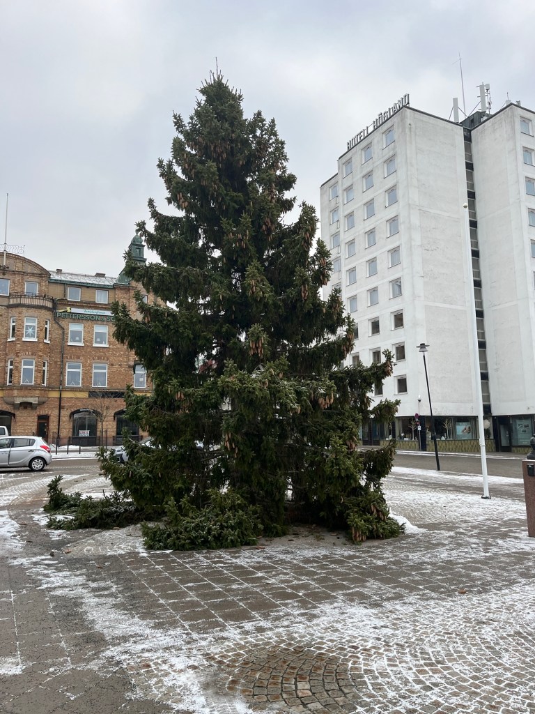 Otroligt fin gran vi har på Stortorget, eller hur? Två stammar och fullproppad med kottar. Lite annorlunda och den är verkligen en symbol för ”Ett annat Småland” som är vår kommuns platsvarumärke. Den har tydligen blivit viral och utnämnd till Sveriges fulaste, omtalad i media hela dagen. Jag gick förbi den efter dagens lunch och jag kunde inte se några större fel. Att den har två stammar. Ja, vissa granar i naturen har det även om ögat är vanast vid en.