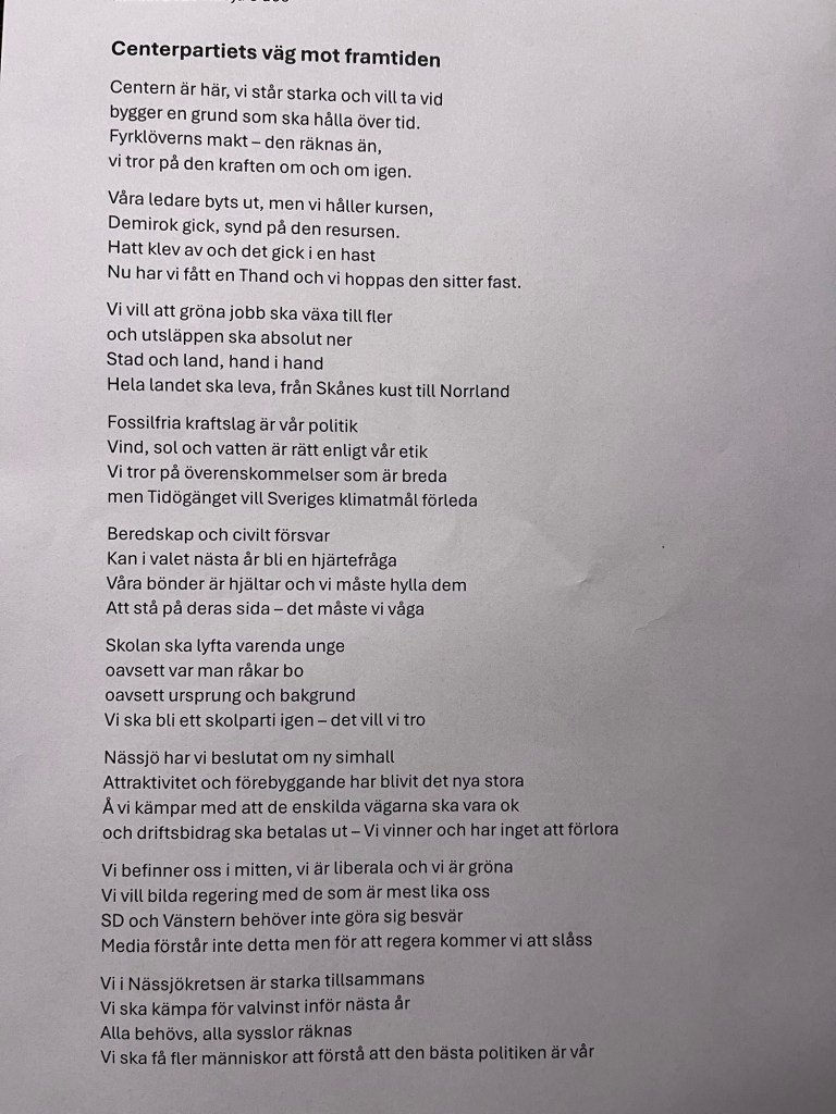 Jag fick en blomma för mitt jobb, i min roll som kommunalrĂ„d och representant för vĂ„rt parti i NĂ€ssjö kommun. Uppskattningen vĂ€rmde hjĂ€rtat sĂ„ lĂ€nge sĂ„ jag knappt behövde duntĂ€cket nĂ€r jag gick och la mig. Jag lĂ€ste dikt â om Ă„ret som gĂ„tt och vad som har hĂ€nt i partiet. Det gjorde jag första gĂ„ngen vid förra Ă„rets julfest nĂ€r vi var pĂ„ Kulturgatan i Bodafors sĂ„ nu har jag gjort det till en tradition. Anders och jag sjöng nĂ„gra julsĂ„nger. Alltid kul att sjunga och jag gör det alldeles för sĂ€llan. Anders har ju Ă€ndĂ„ sin rikstagskör.
