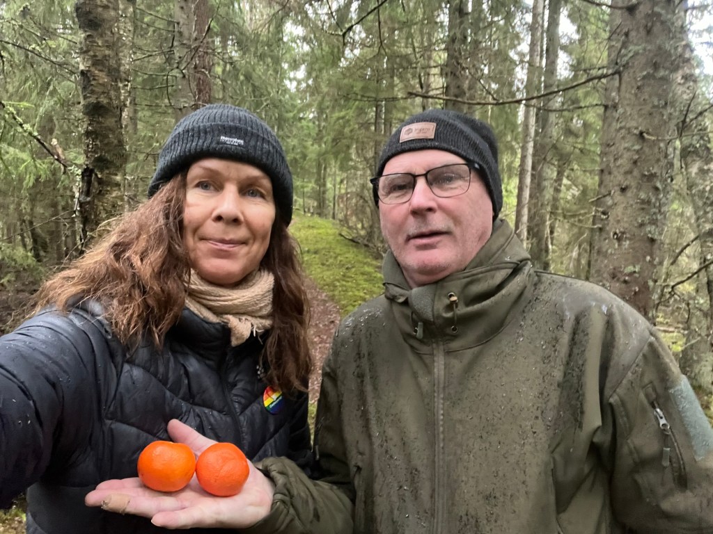 Vilken härlig Luciadag. Förutom vädret då kanske. Lördag!!! Sovmorgon och gofrukost vid TV’n. Sen drog vi en runda i skogen, på Åsen. Det började regna så det blev lite blött, det är dock inte farligt.