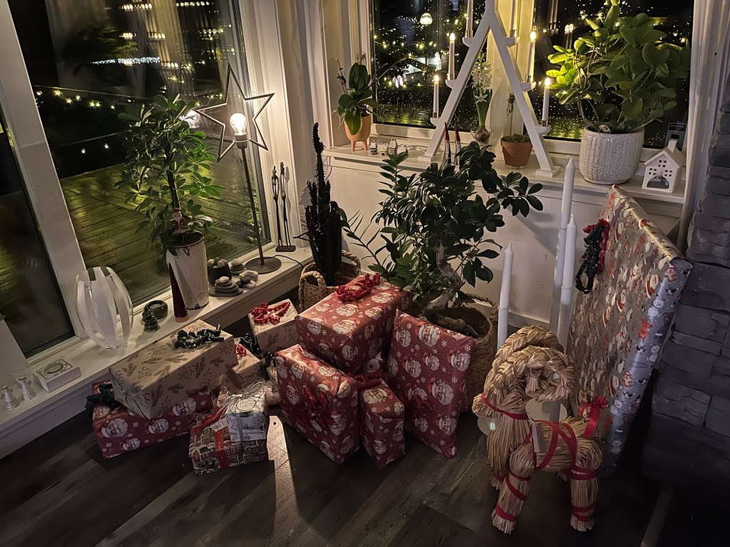 Hem och nu har jag slagit in alla julklappar och lagt dem under icke-granen för vi orkade inte stanna på Södea torget och inhandla en. Det får bli till veckan. En liten.