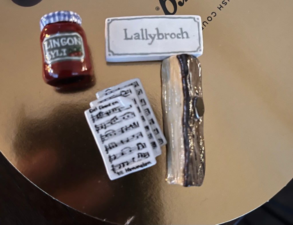Gårdagens Juldag var ALLT jag kunde önska mig. Samvaro med nära och kära, god mat och fina paket och etiketter! Henry hade gjort små kylskåpsmagneter till alla i hela familjen. Jag fick ett vedträd (det fick alla för att påminna om Kenneth). Ett notblad, en lingonburk och en skylt med ”Lallybroch”. Så kul!!!
