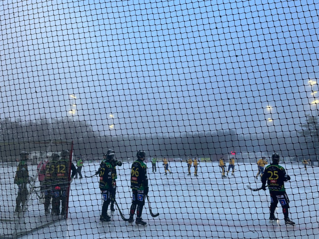 Matchen började grymt bra. Å vilken inramning. Frostvitt och sprakande eldar. Bandyhallar i all ära men bandy utomhus är sannerligen en go känsla. Heja Frillesås BK!! Tyvärr förlorade de med 3-6. Så ledsamt!Nästa tisdag spelar de i Vetlanda mot Vetlanda. Vore så roligt om David får vakta målet!