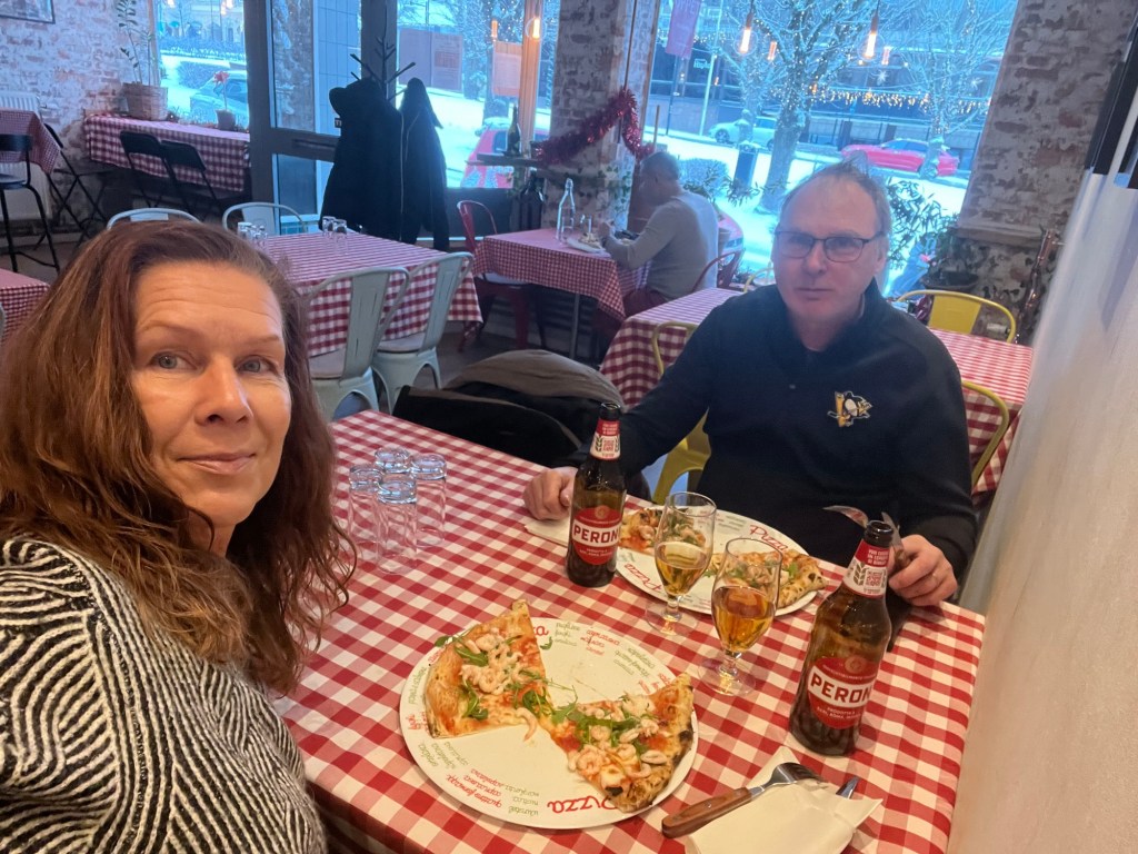 Vi gick till stan och delade en pizza pÄ De Rada. SÄ gott! Sen kollade vi utförsÀljning Bonvings skor och vi gick dÀrifrÄn med tvÄ par skor var. à det kan kÀnnas sniket att köpa pÄ utförsÀljning men jag har dÄ handlat skor dÀr sÄ dÄligt samvete har jag inte. Halva priset gör en del pÄ totalen.