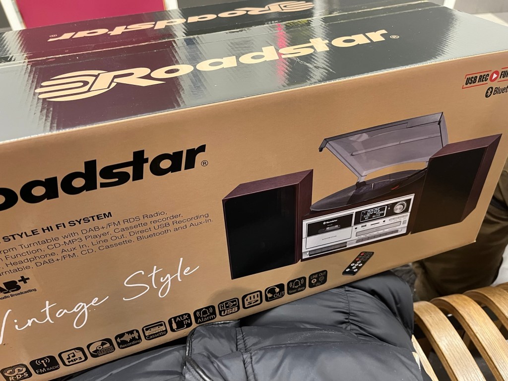 HÀmtade Àven min julklapp pÄ Elon Ljud o Bild. LP-spelare inkl CD o radio o högtalare. Ni kan se oss framför oss va? Famnen fulla med kassar. Vi gick inte hem. Vi passade in en buss hem till Solbacka.