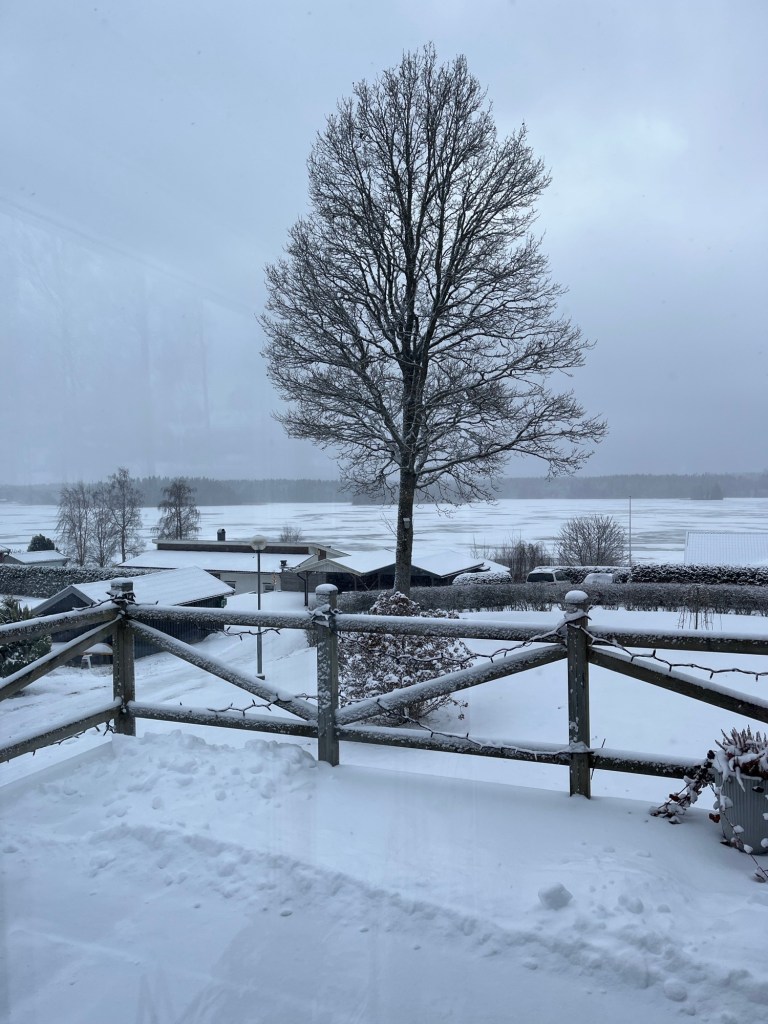 Snöskottning efter frukost. Är man två går det fort. Har inte kommit drivvis men det är gott att få bort. Ringde mamma o h kollade snöstatus i Torset. Med två bröder, varav en rejält förkyld och den andre hyfsat nyligen knäopererad känner måste vi hjälpas åt. Tacksam att goda grannar har röjt hos mamma och dessutom verkar det inte fyllt på lika mycket av vitt.