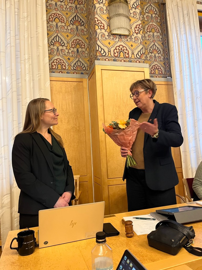 Sara KSO tackar av Malena vid kommunstyrelsens möte