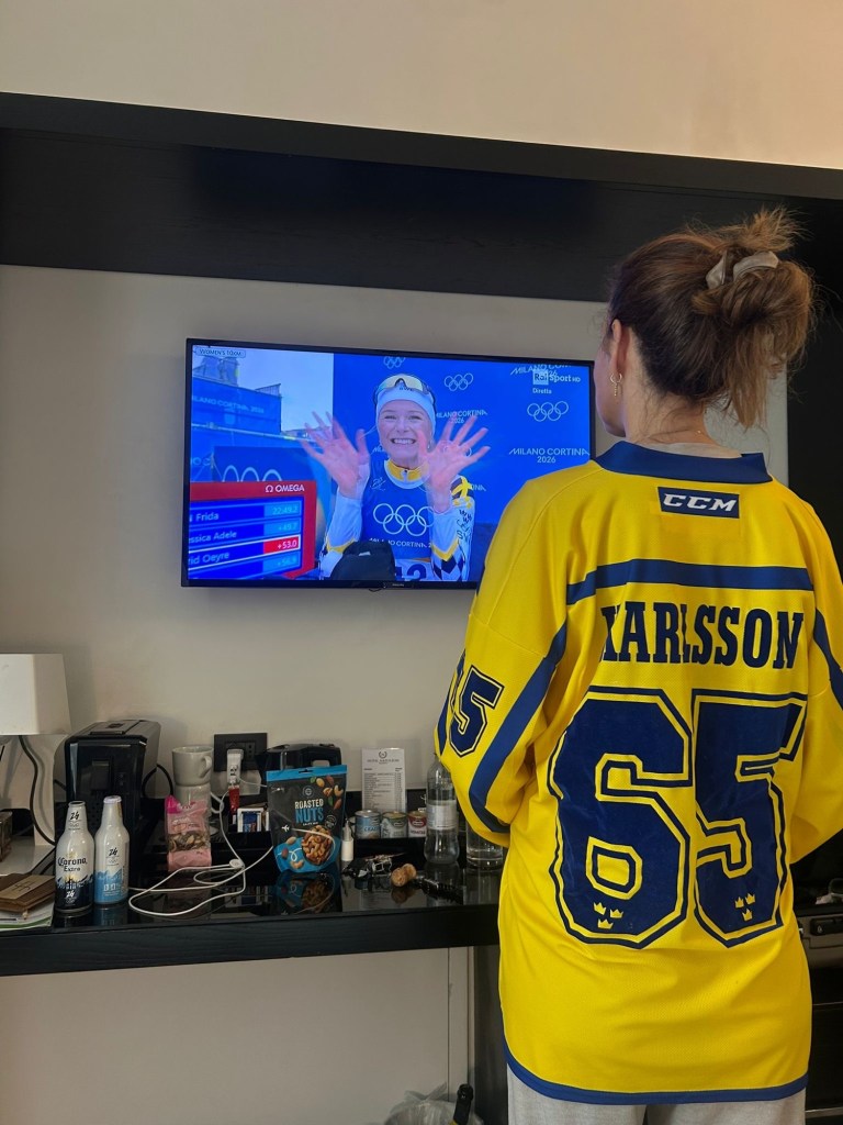 HĂ€rliga hockeymatcher har vi upplevt och kĂ€nslan nĂ€r Sverige gör mĂ„l och Lasse Holms pastalĂ„t drar igĂ„ng – obeskrivlig kĂ€nsla. đđŒđžđȘđđŒ Men bĂ€sta sportupplevelsen denna resa var att fĂ„ se mitt kusinebarn Frida Karlsson ta OS-guld. PĂ„ hotellrummet iförd landslagströja. TĂ„rarna bara sprutade av glĂ€dje. đâ€ïž