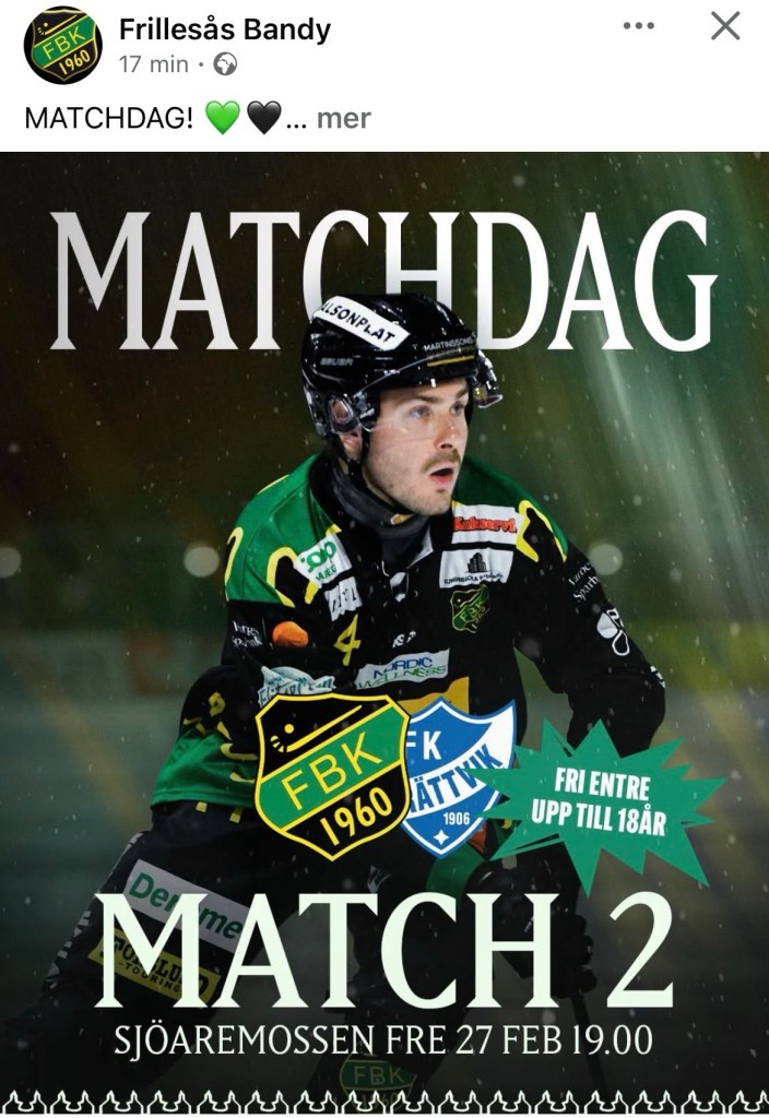 Snart startar andra kvalmatchen för Frillesås. David står i målet. Hade ingen möjlighet att åka och kolla pga intervjuer men jag har matchen i datorn och ska titta. Heja, heja Frillesås och David i målet. Nu tar ni Rättvik och vi vill se två poäng efter dagens match!