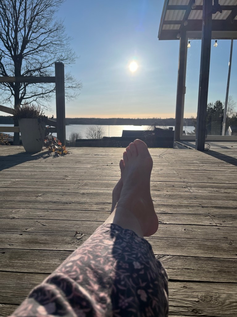 Har skrivit det ofta – just denna fredag var extremt välkommen! Så är det idag. Satt en stund mot husväggen och solen lyste från klarblå. Bara 11 grader men i solen var det varmt. Njöt av varje sekund (för solen går fort ned), Satt på trallen för jag orkade inte hämta en stol. Helt slut i min politikerhjärna efter denna veckan. Det har sina orsaker men jag vill inte direkt gå in på det. När det kommer förslag och info som går helt tvärt emot vad jag och mitt parti står för, det blir bara just jättejobbigt.