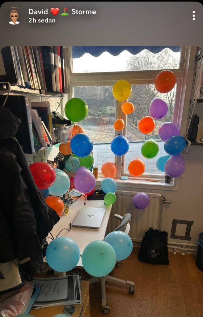 David skickade en bild i vĂ„r familjechatt pĂ„ Snap. AlltsĂ„ â tĂ€nk er att komma till arbetsplatsen som Ă€r full med ballonger. Arbetsgivaren ville uppmĂ€rksamma att FrillesĂ„s behöll sin plats i elitserien. TillĂ€ggas kan, att rektorn för skolan dĂ€r David jobbar Ă€r styrelseordförande för FrillesĂ„s bandyklubb. Otroligt fint gjort! đ€đ