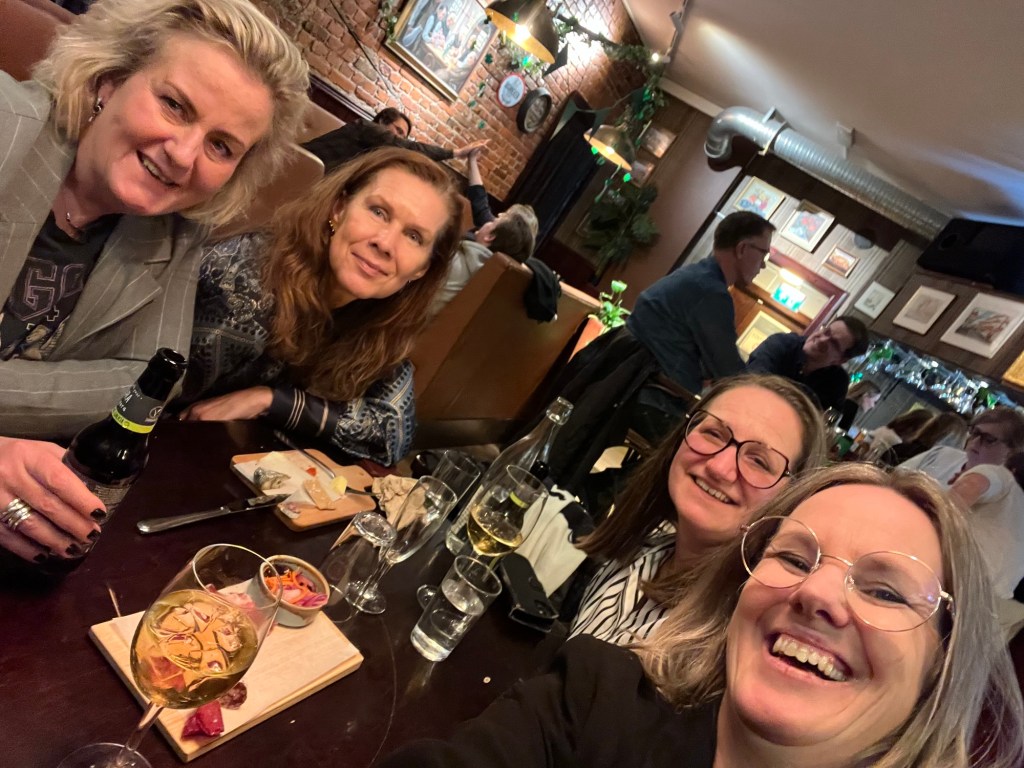 AW med mina fina vänner Cissi, Lina och Kicki på ölcaféet i Nässjö i går. Alltså – att få ha förmånen att ha såna vänner. 🥰 Vi ältar och vi pratar, vi skrattar och nästan gråter. Alla får ta plats och vi delar både sorg, frustration och glädje. Det är lycka! Jag beställde en dryck som var grön och såg riktigt giftig ut, eller vacker (det är upp till betraktaren). Jag spinner igång direkt i politisk riktning. Centerdricka till 100 procent även om det i själva verket var i andan av Saint Patric’s day (de hade smygstartat lite – firas den 17 mars).