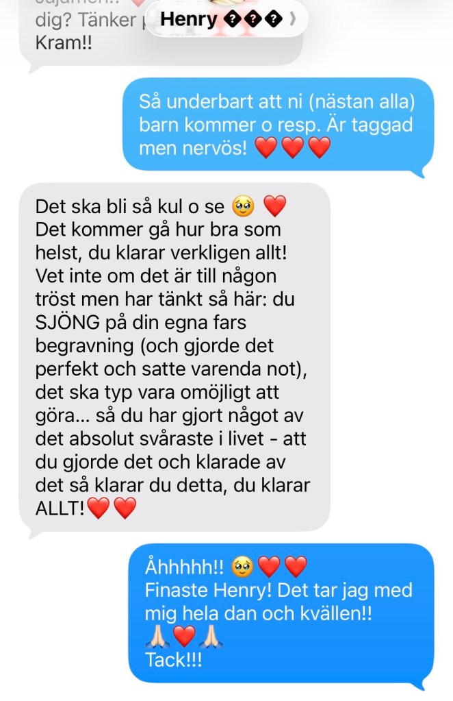 Jag hade ju bjudit (tvingat âșïž) dit mina barn med respektive, mamma o Jonas och det var ett ENORMT stöd att ha dem i bĂ€nkarna pĂ„ Pigalle ikvĂ€ll. BĂ„de Jonas och Henry var olydiga đ och tog bilder o spelade in mig. Tack! đ«¶đ»