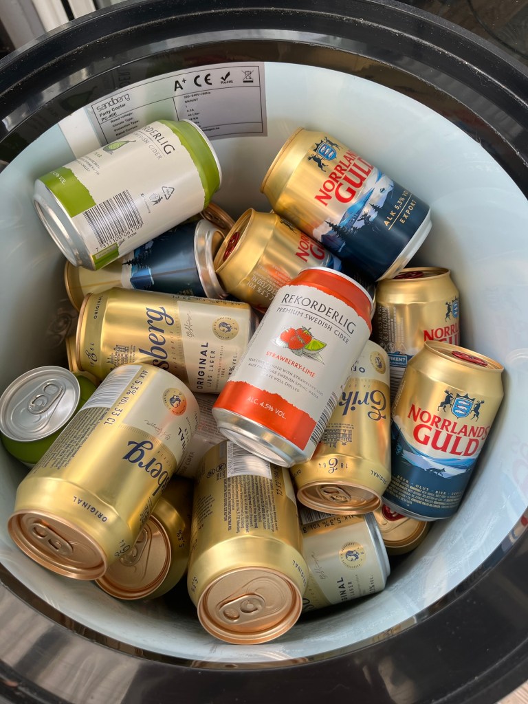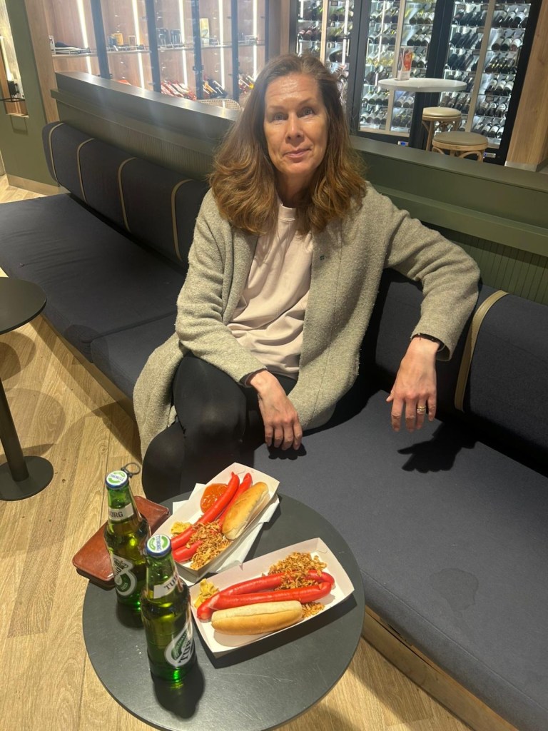 Många goa skratt och många roliga historier. Att höra en Landsbro-bo på bredaste småländska säga ”hallå” i kassan i Tyskland, bara det! Men personalen är nog vana vid svenska och till o med småländska. 😅 Ja, det känns lite suspekt att äta korv kl 02 och gå och botanisera bland prosecco och likörer kl 05 på morgonen. 🙃